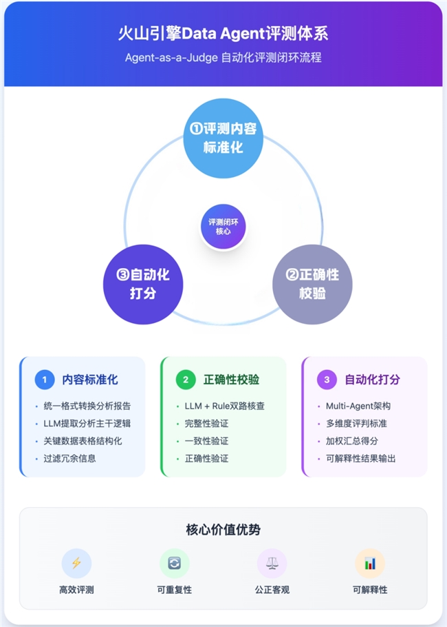 在当前企业AI投资重心从技术选型转向实效衡量的背景下,数据智能体作为融合大语言模型、工具调用与执行能力的复合型智能体,正逐步成为企业实现业务感知与决策的新型基础设施。然而,缺乏统一成熟度评估标准始终是制约产业落地的核心痛点。火山引擎此次推出的评测体系直面三大行业挑战:传统评测过度侧重SQL语法正确性等技术指标而忽视业务价值转化;现有体系依赖预设标准答案难以适配动态业务场景;局部能力检验无法满足端到端闭环分析需求。