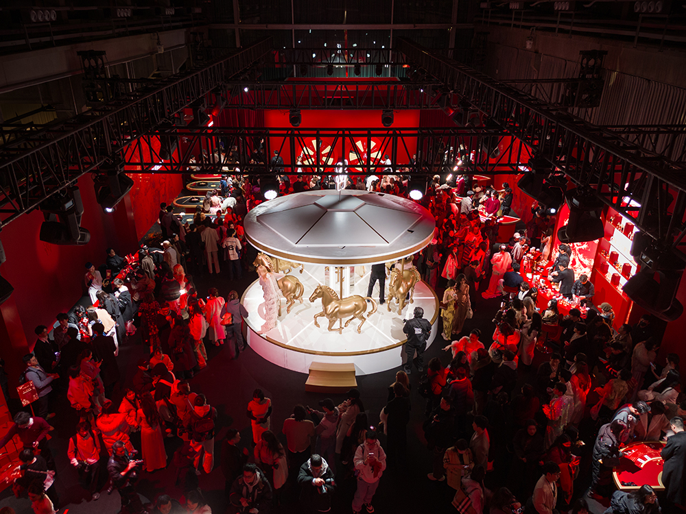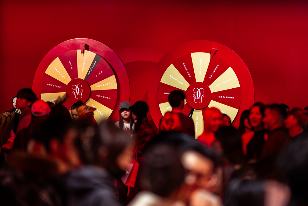 娇兰以赤红之色为主色调渲染鸿运赢家体验空间,寓意红运启新,迎接整年胜意美好。空间中央金逸骏马旋转而行,宛若驰骋之姿,传递娇兰“前程坦途,赢面而来”的新年祝愿。