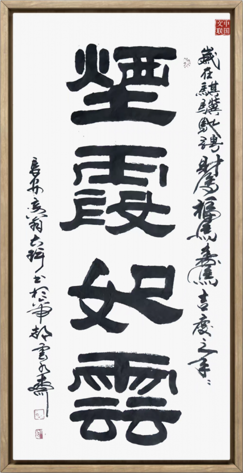 尤为难得的是,他将这份热爱转化为服务人民的实际行动。数十年来,坚持为百姓书写春联,“行楷隶书春联逾数万对广置千家万户迎春如意门上,累计长度逾400千米”。六秩年书写从未休,十万余副春联靓神州——这份坚持背后,是一位艺术家对人民、对时代的深情厚意。