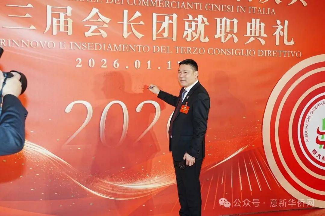 意大利新华时报金荣军报道:2026年1月17日,意大利中国总商会在罗马万豪大酒店举行换届庆典大会,林建芬先生荣任第三届会长。中国驻意使馆牟俊宏主任、刘佳鑫领事,罗马市市长顾问Marco Pacciotti 、意大利政府官员 Tiziana Biolghini 等意大利政要应邀出席活动。来自中国驻意使馆领区、米兰领区、佛罗伦萨领区的侨团侨领,以及来自欧洲多国的侨领代表,与会长团成员及家属、青年委员等共500余人齐聚一堂,共同见证这一重要时刻。